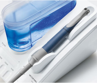 Cu ajutorul acestui echipament se indeparteaza tartrul, biofilmul, bacteriile fara afectarea tesutului si radacinii dintelui. Curata paradontiul complet.